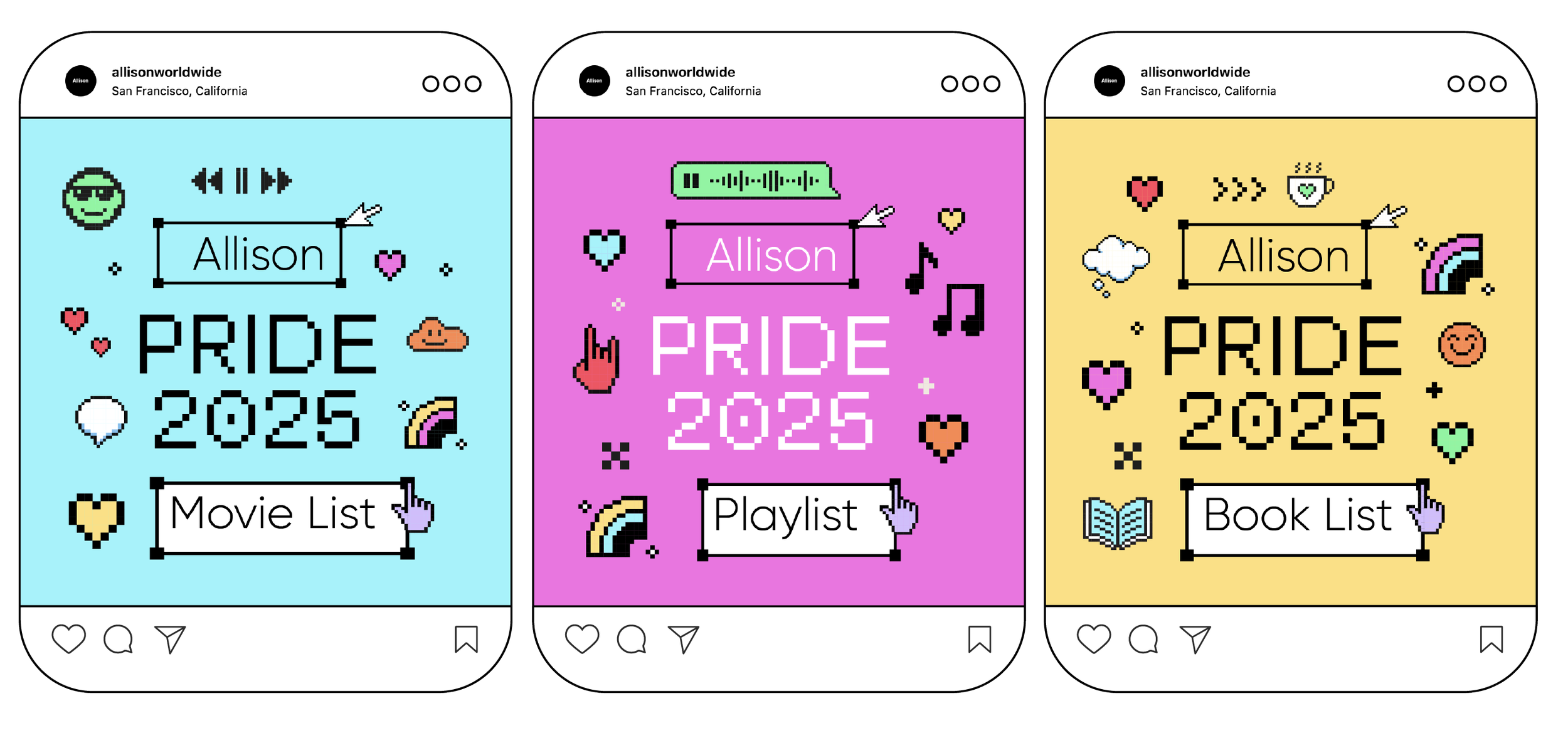 Allison + Proud is a social media campaign created in 2025 to celebrate LGBTQ+ artists and content makers during Pride Month. The content was pushed out onto social media and through email to clients and employees.